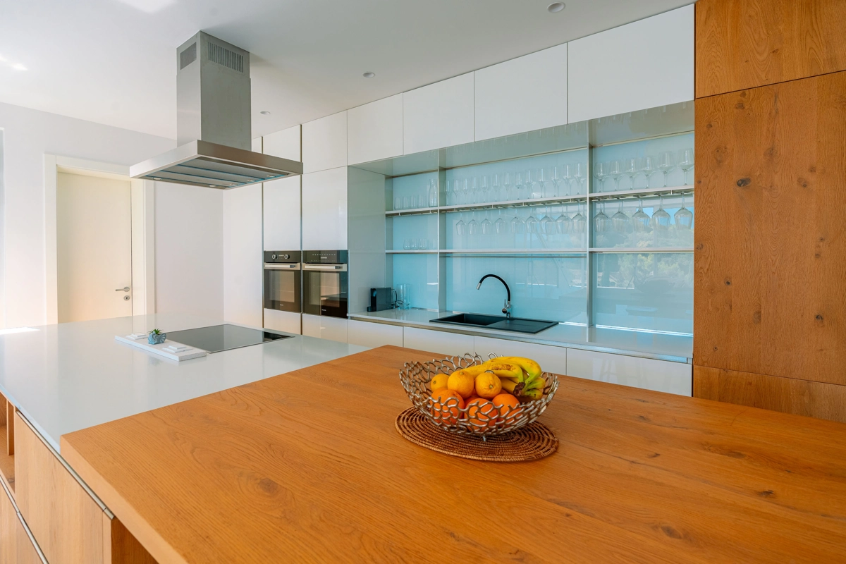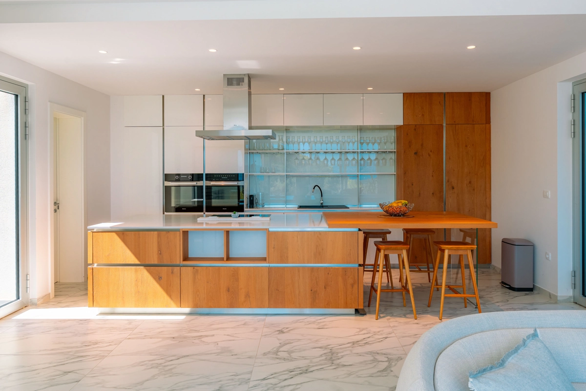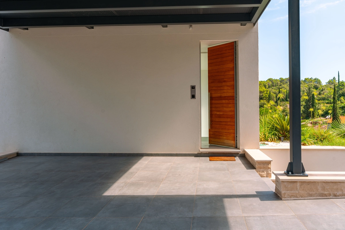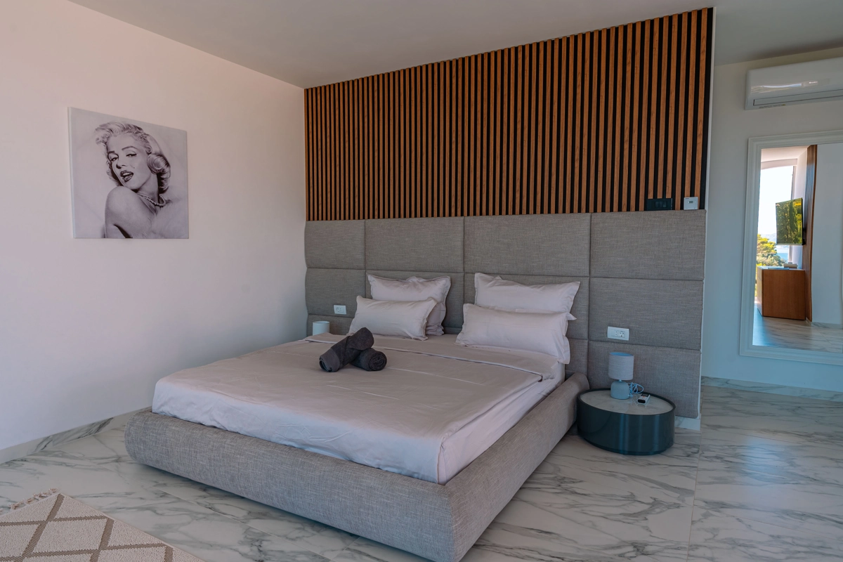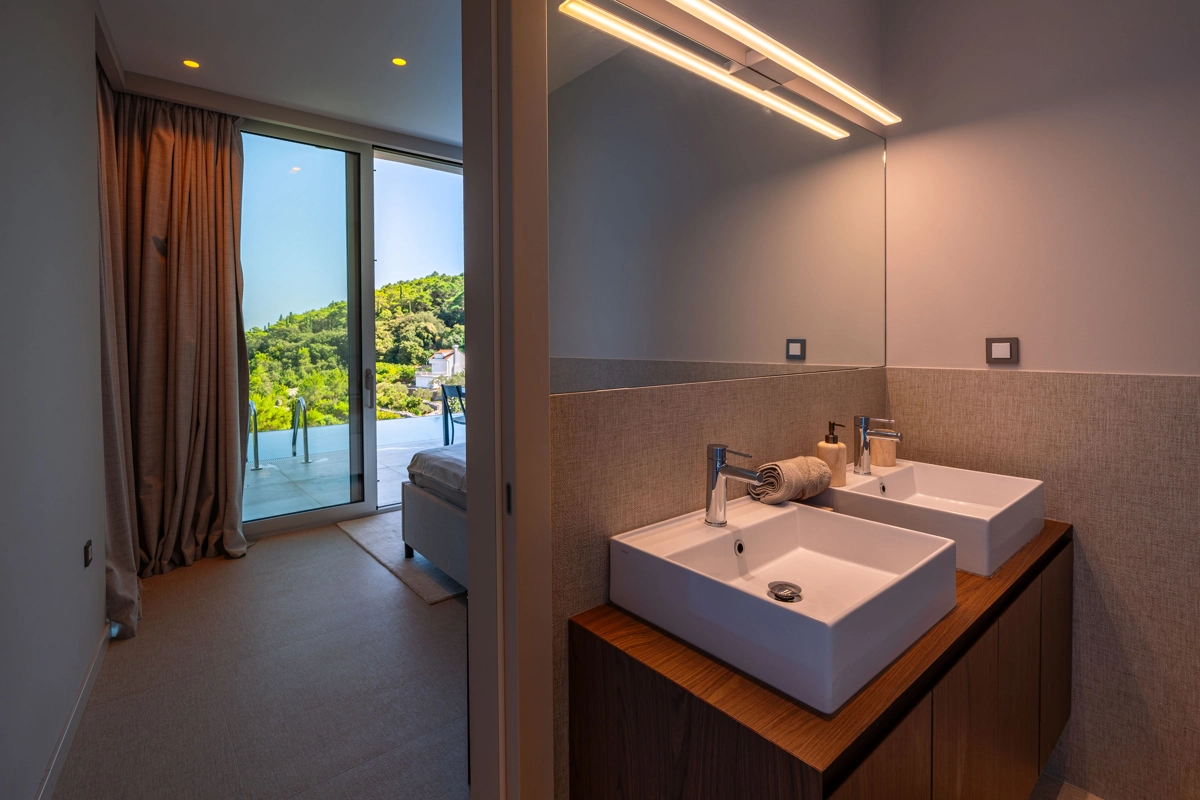 Suvremena arhitektura, minimalistički dizajn interijera i eksterijera. Iz vile se pruža prekrasan pogled na grad Korčulu, Badiju i zelenilo.