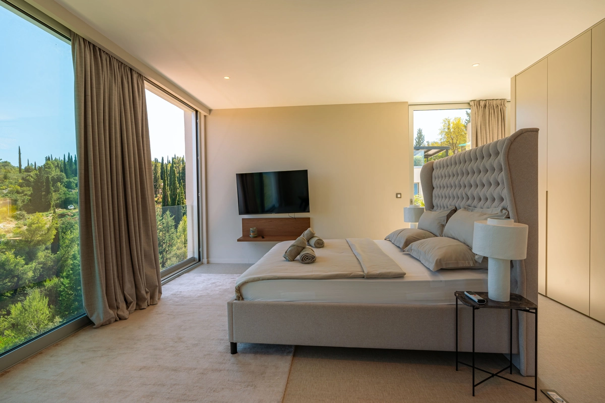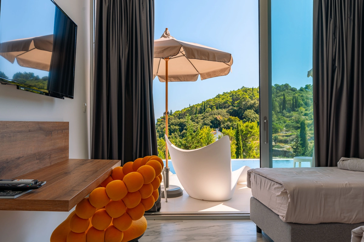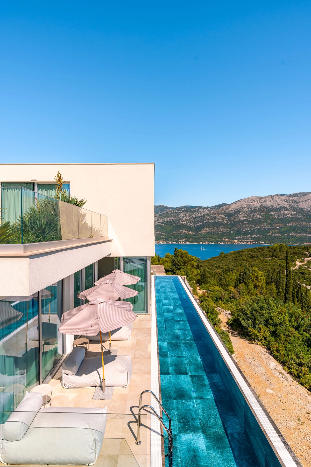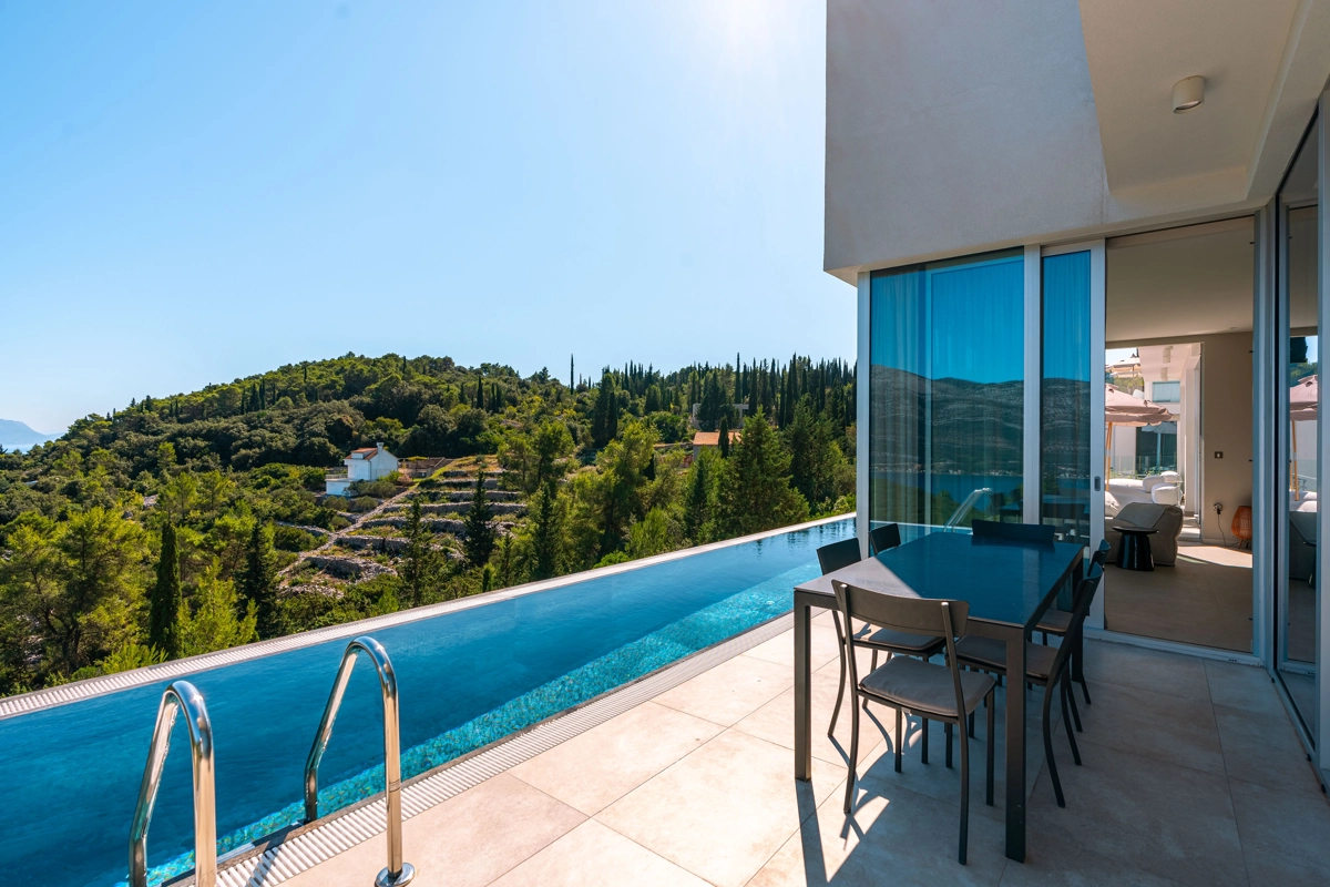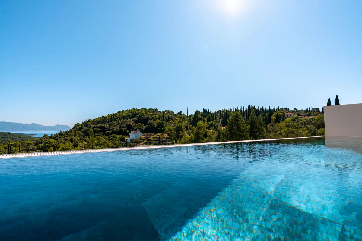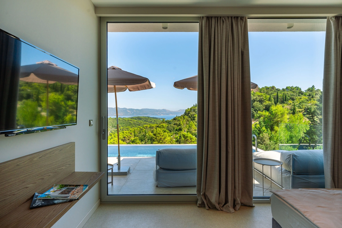 panoramski pogled iz svih prostorija vila, vrtova i terasa na stoljetnu borovu šumu, Pelješac i Korčulanski kanal