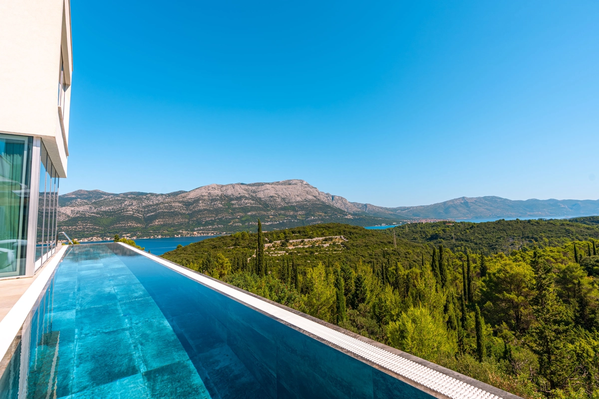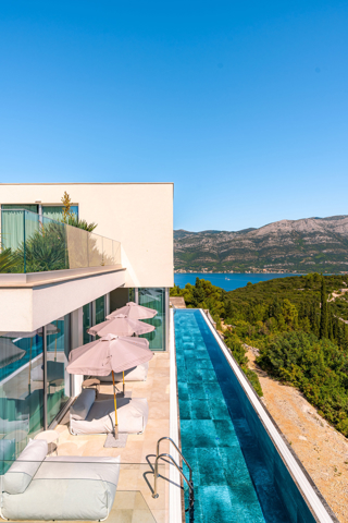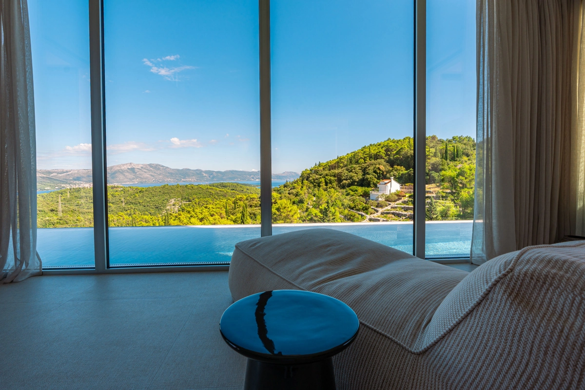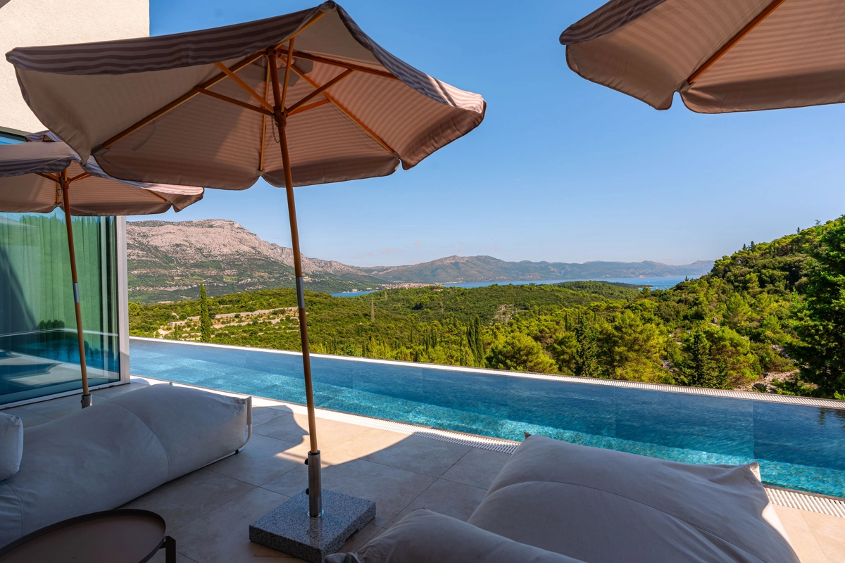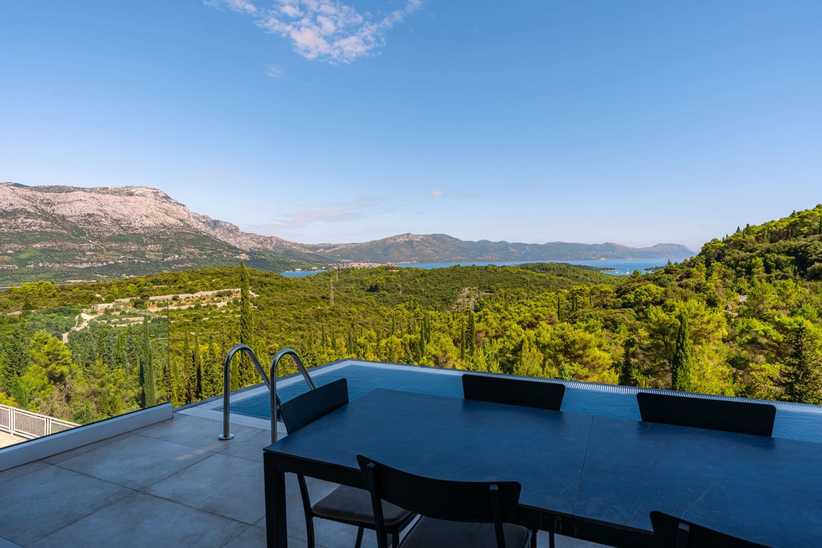 panoramski pogled iz gotovo svih prostorija vila, vrtova i terasa na stoljetnu borovu šumu, Pelješac i Korčulanski kanal