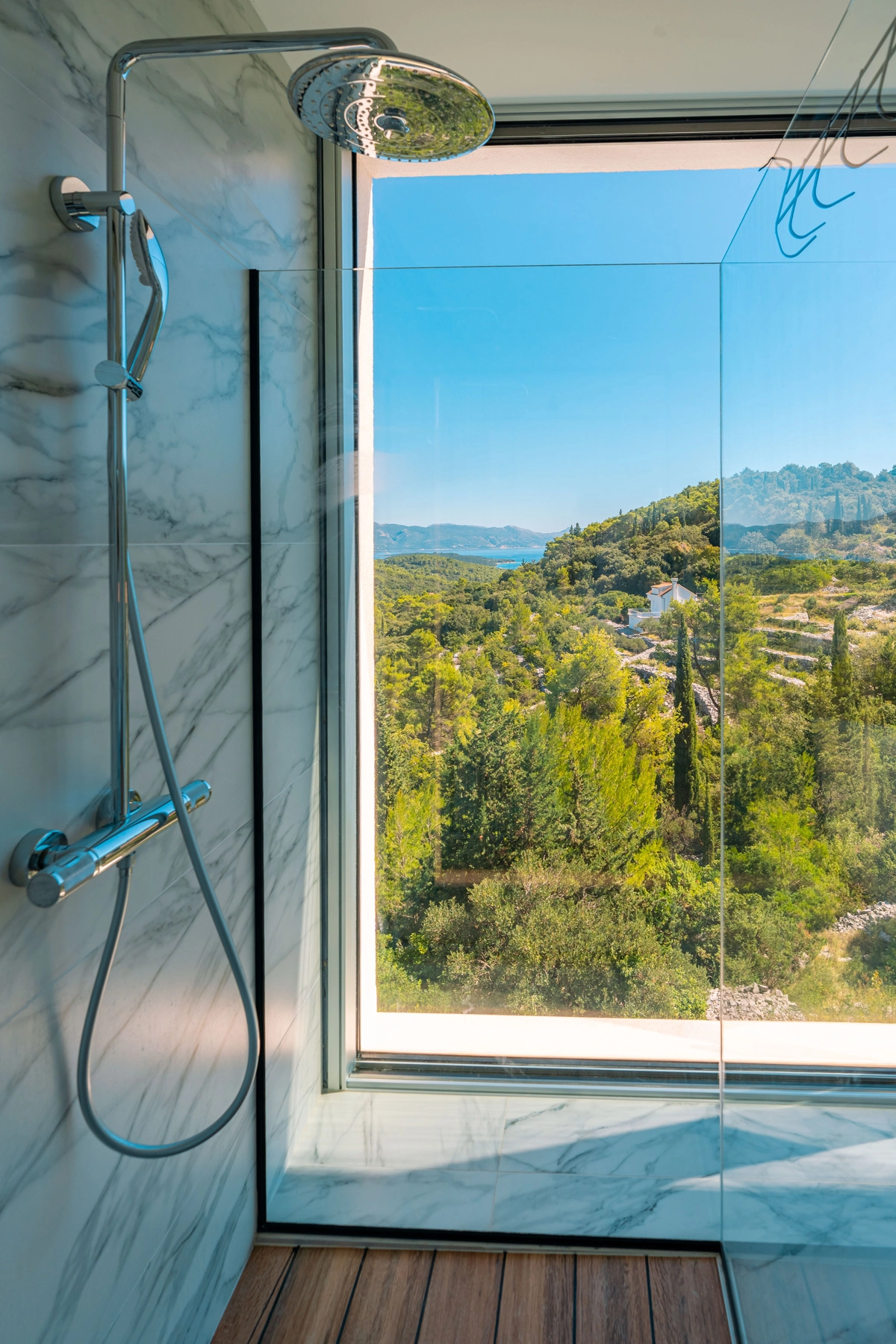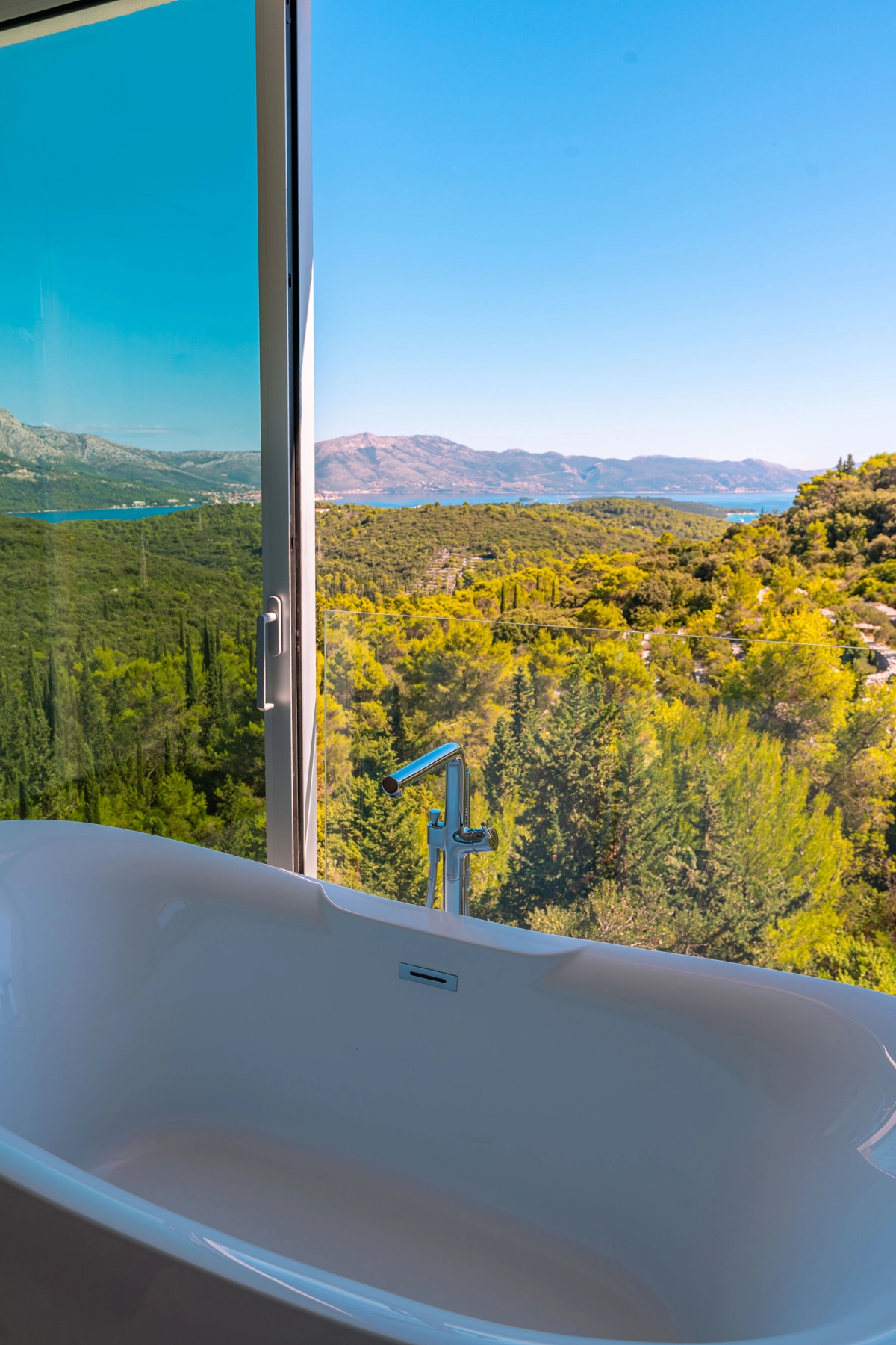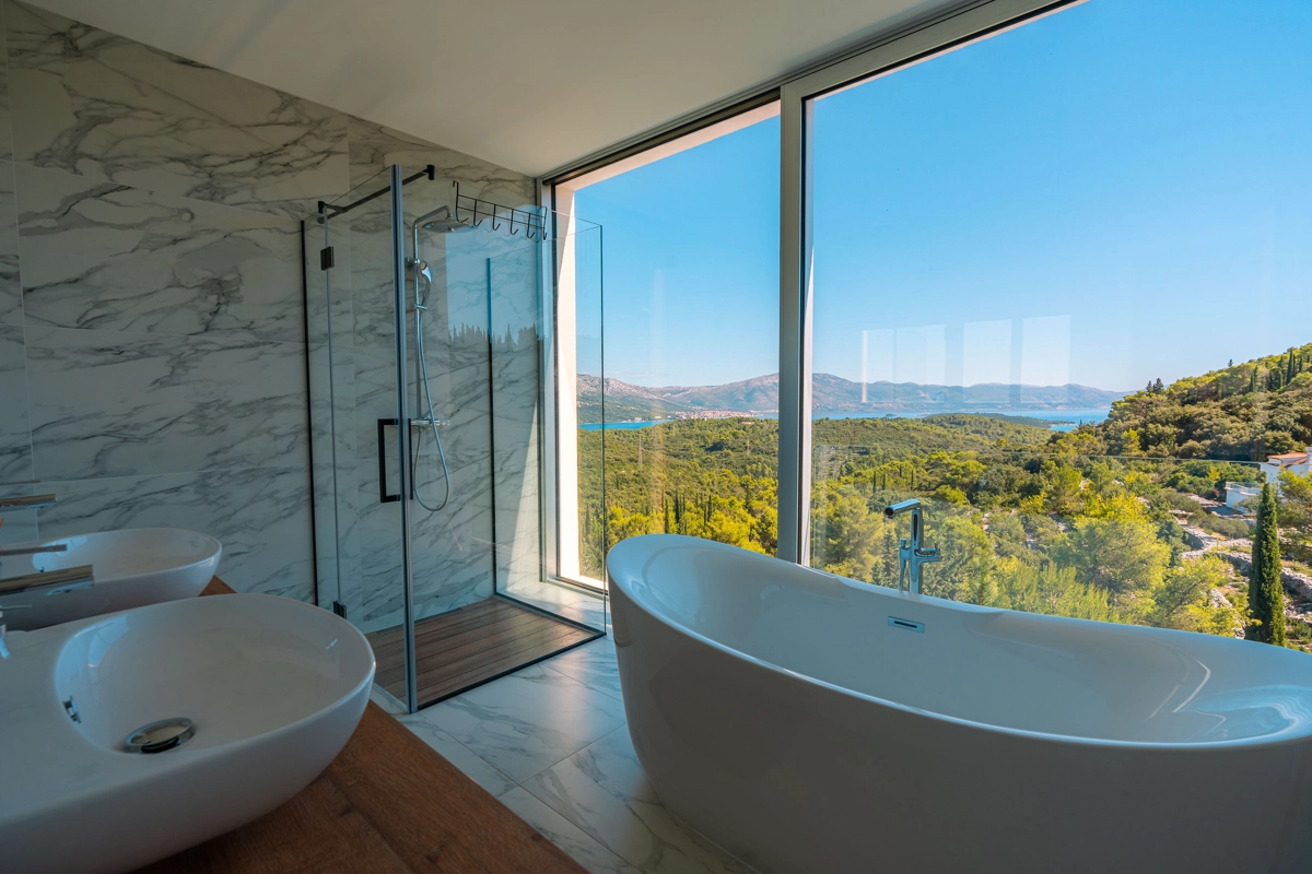panoramski pogled iz gotovo svih prostorija vila, vrtova i terasa na stoljetnu borovu šumu, Pelješac i Korčulanski kanal