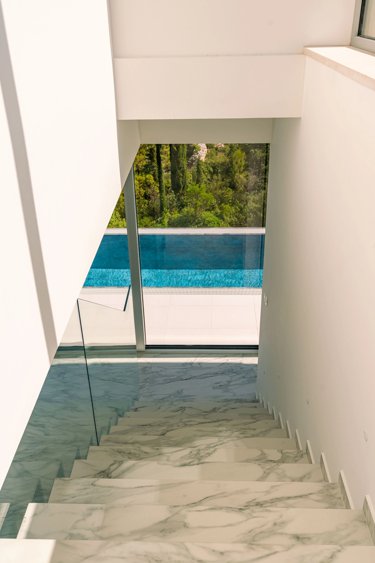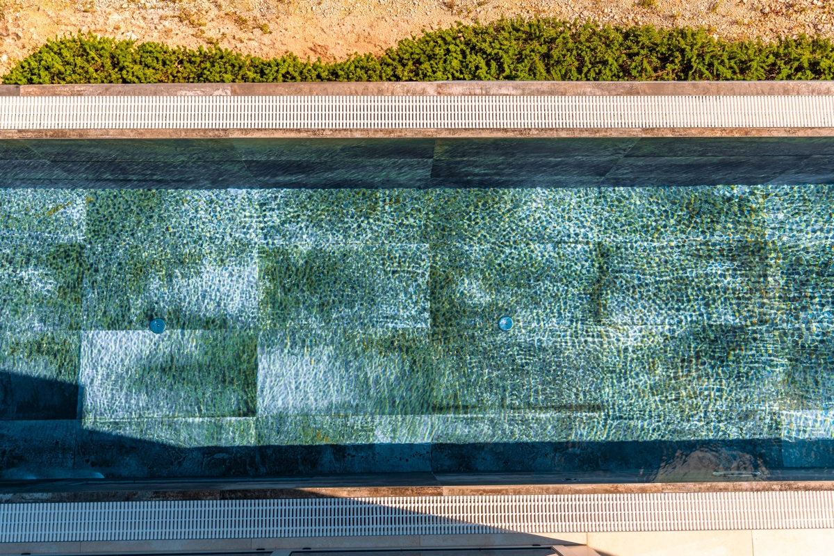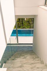 Prizemlje 170.70m2: dnevni boravak s kuhinjom i blagovaonicom, prekrasna terasa, infinity bazen, 3 spavaće sobe s kupaonicama.