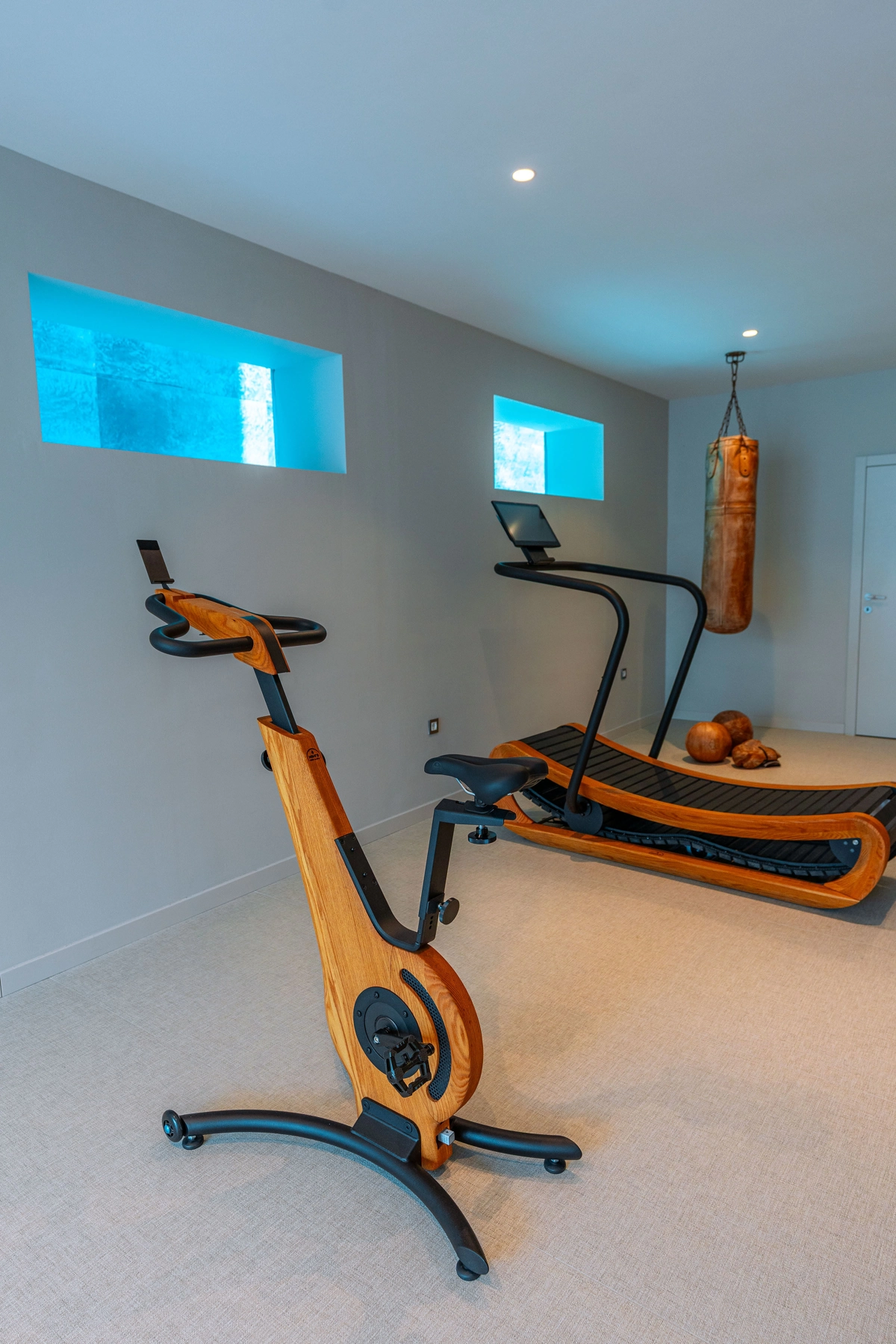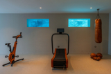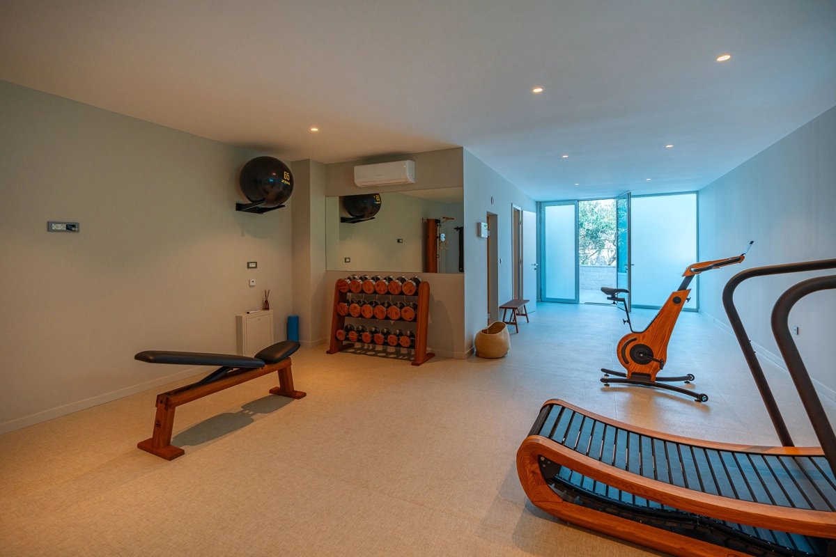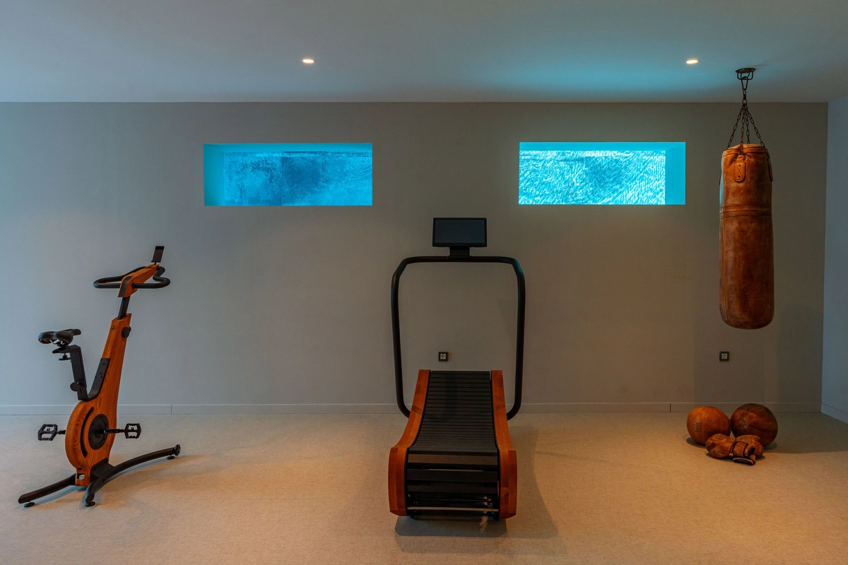 teretana i wellness s pogledom kroz prozor na dubinu bazena