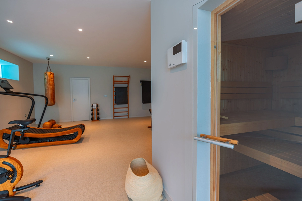 Suteren 93.08m2: teretana i wellness (sauna) sa kupaonicom, vešeraj i ostava.